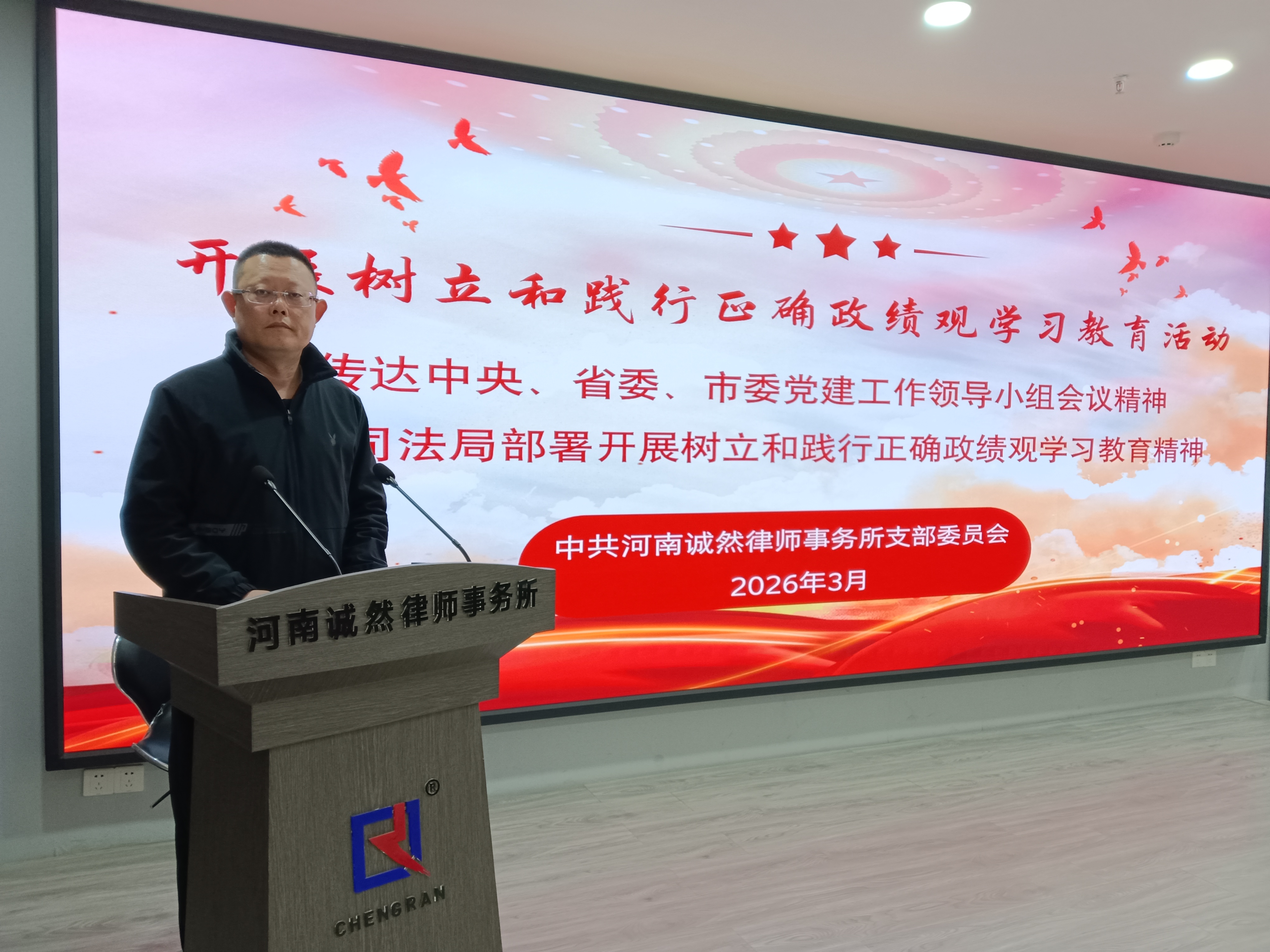 根据洛阳市律师行业党委对全市律师行业深入开展树立和践行正确政绩观学习教育动员部署的要求,3月7日上午,河南诚然律师事务所党支部召开会议,由党支部书记郭书铭传达中央、省委、市委党建工作领导小组会议精神及市司法局部署开展树立和践行正确政绩观学习教育精神。律所全体律师和实习律师参加会议。