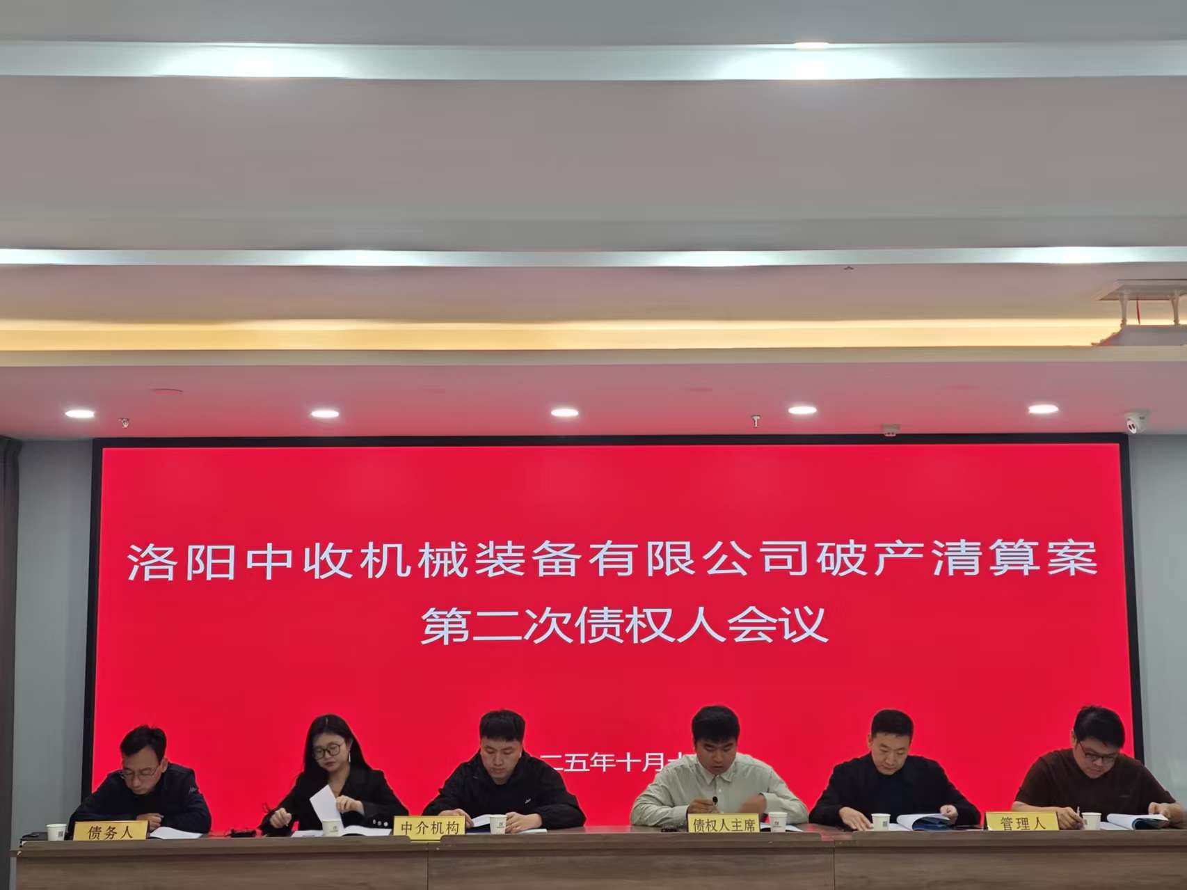 10月13日上午,洛阳中收机械装备有限公司(以下简称中收公司)破产清算一案第二次债权人会议在河南诚然律师事务所成功召开。河南文丰律师事务所和河南诚然律师事务所作为联合管理人对此案高度重视,在洛阳市中级人民法院相关部门的监督指导下,管理人与债权人等各方进行充分沟通,精心组织安排,管理人团队成员和部分债权人参加了本次会议。会议采用线上和线下两种方式进行,会议全程秩序良好,各项议程规范有序,顺利完成预定的七项议程。
