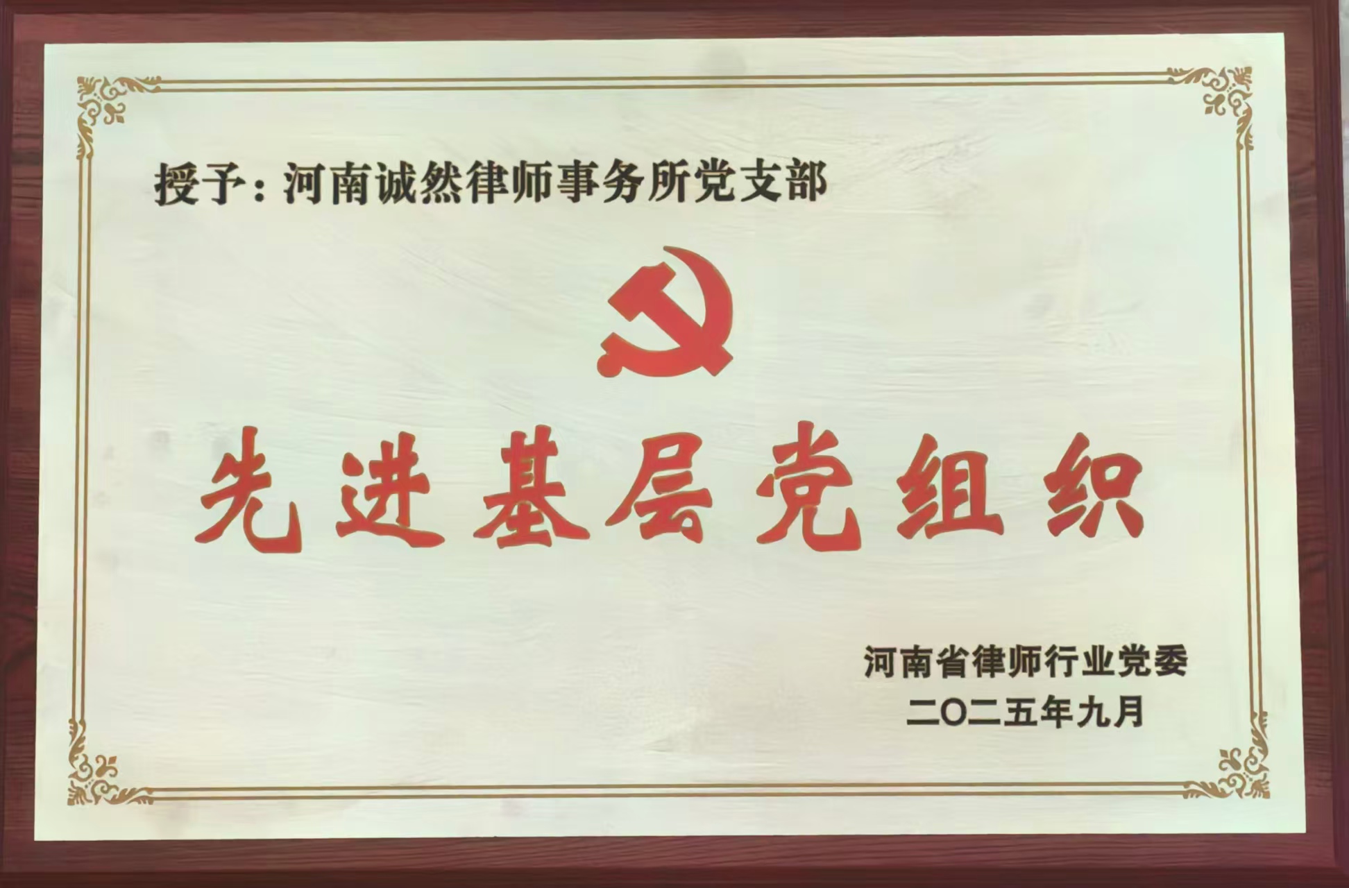 诚然党建‖河南诚然律师事务所党支部荣获“河南省律师行业先进基层党组织”荣誉称号